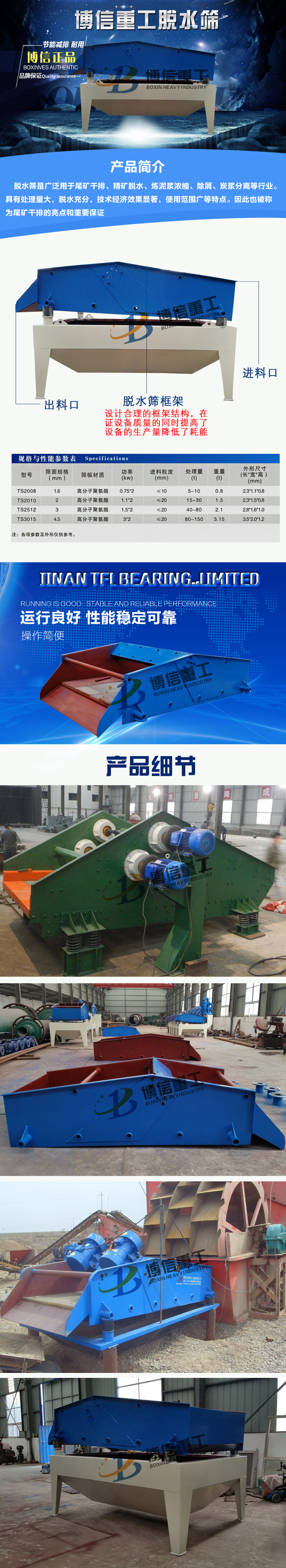 TS型係列脫水(shuǐ)篩是我公司針對尾礦脫水、煤泥脫水、泥漿脫水(shuǐ)開發的一種篩分設備,也是目前尾礦幹(gàn)排(pái)脫水設備中投資回報率高的設備,該脫水篩具有投資小,運行成(chéng)本低,相對耗能少,脫水率高的優秀特點。